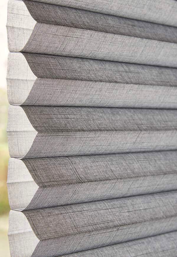 Duo Tone fabrics always present a white colour on the exterior side of Duette® Shades with your unique colour choice on the interior facing side. This creates a neat and uniform look from the exterior view of your home.