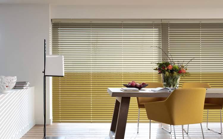 The simplest incarnation of an ombre window blind is two shades; one deep one light. This split toned ombre pattern works almost like a dado rail on a wall, splitting the height of the room. The ombre colour mix selection in such a minimalist mix is essential. They must be a tonal shift rather than a hard jump between contrasting colours. Make sure the deepest tone is at the bottom, so that the room still feels fresh if you have the blinds down during the day, as a lighter shade above makes the room feel more airy. Classic visual tricks with a thoroughly modern update.