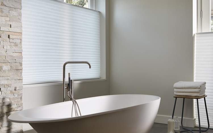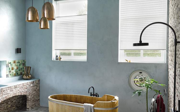 Modern bathrooms can have a more hard-edged feel with lots of glass, engineered wood or brushed steel, but they will still need some natural touches (such as stone) to stop them feeling more hospital than hospitable. Floor to ceiling windows here can also bring the outside in, with perhaps the addition of some privacy-affording wood blinds or vertical blinds to protect ones modesty.